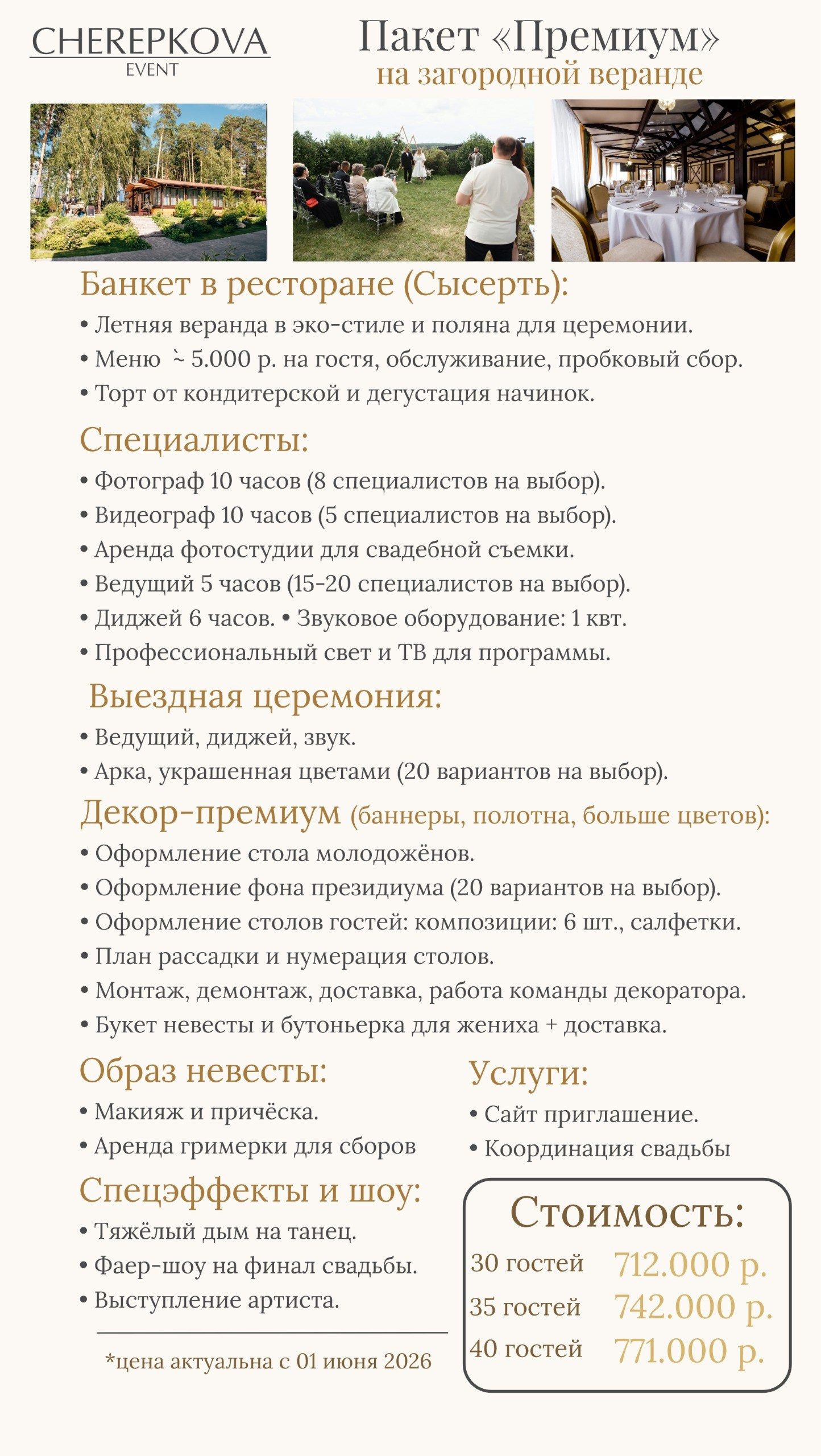 Если Вам подходит пакетное предложение и Вы готовы работать с командой «Cherepkova Event»: